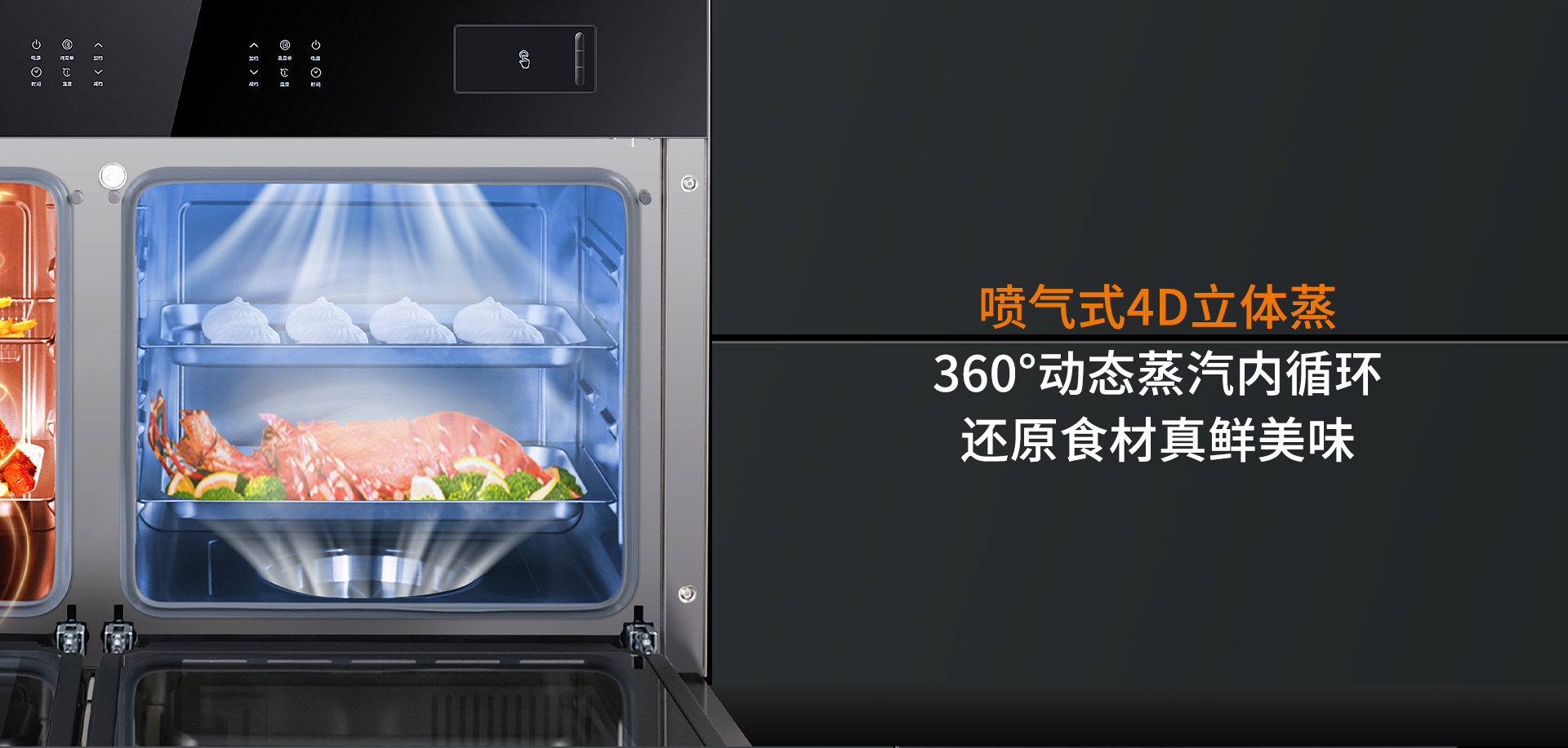 噴氣式4D立體蒸加上360°動態蒸汽內循環,讓食材方方面面、內外都均勻受熱,還原食材真鮮美味,讓美味輕松上桌。