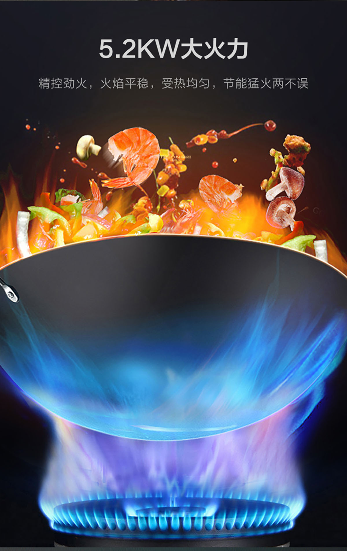 5.2KW大火力,精控勁火,受熱均勻,節能猛火兩不誤