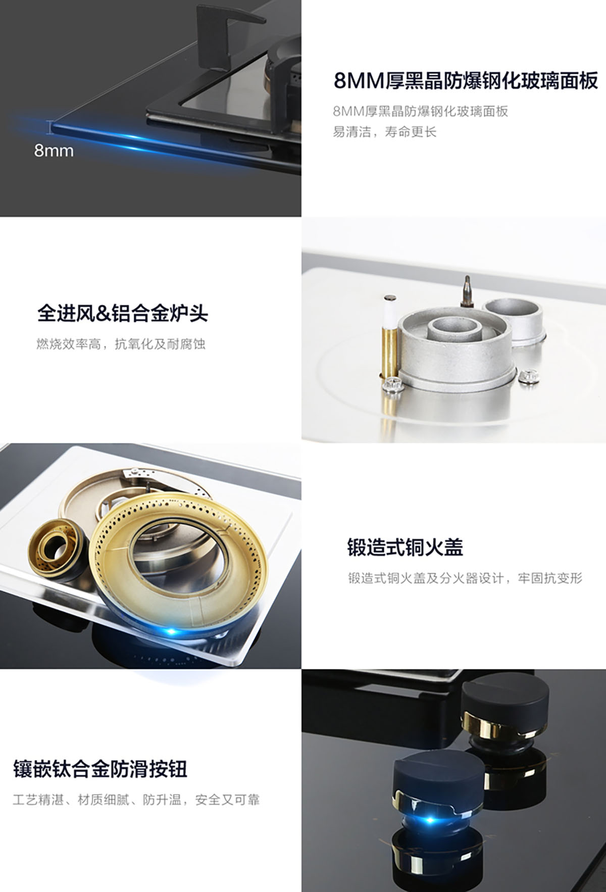 8MM厚黑晶防爆鋼化玻璃面板,易清潔,壽命更長