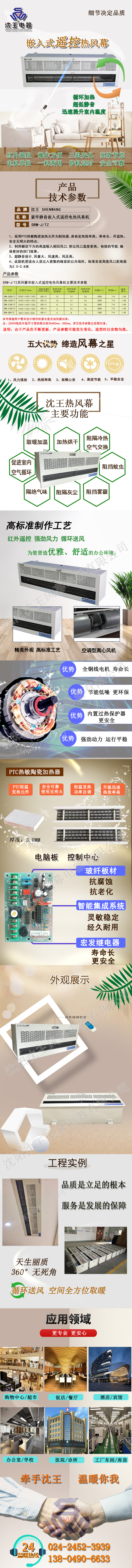 豪华静音嵌入式遥控电热风幕机